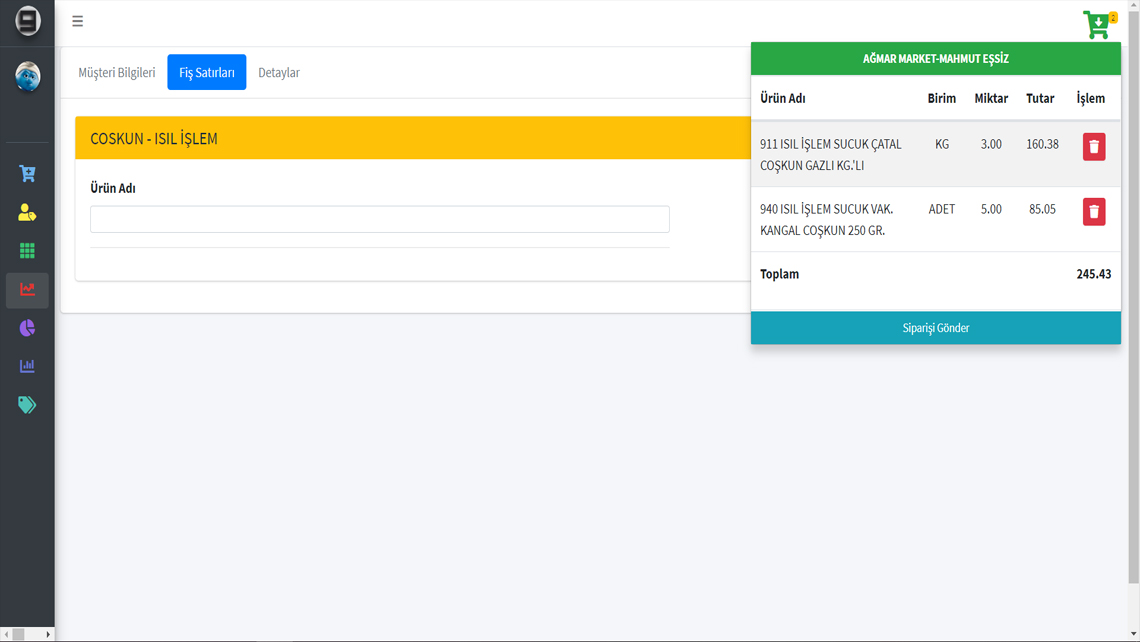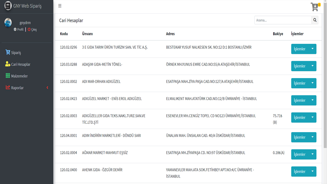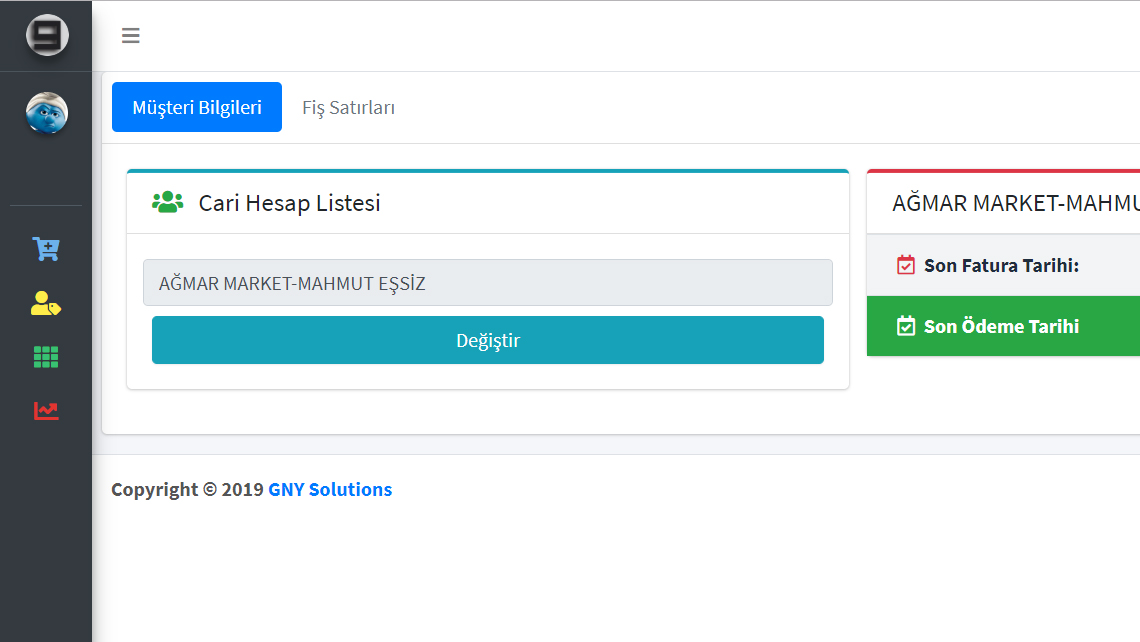 Müşterileriyle ilgili tüm bilgileri görebilir, Ekstre, Ödeme, Sipariş bilgilerine ulaşarak