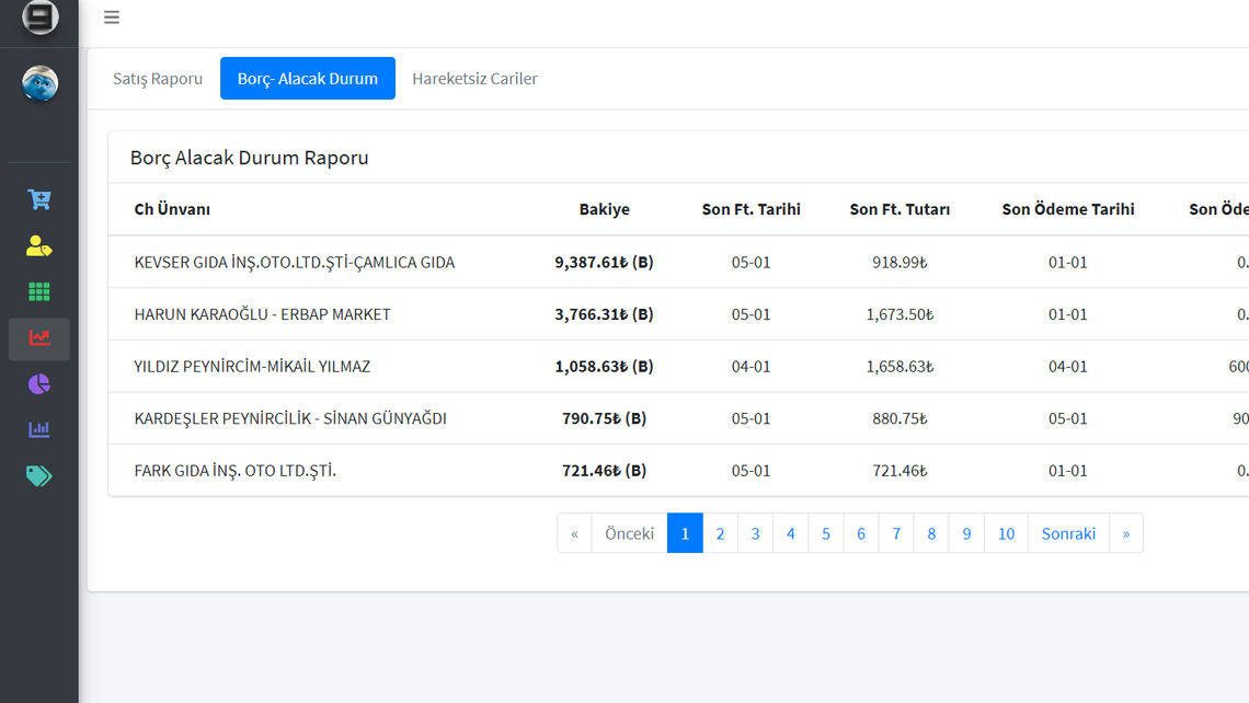 Kendi müşterileriyle alakalı ödeme, tahsilat raporlarıyla da işini kolaylaştırır.