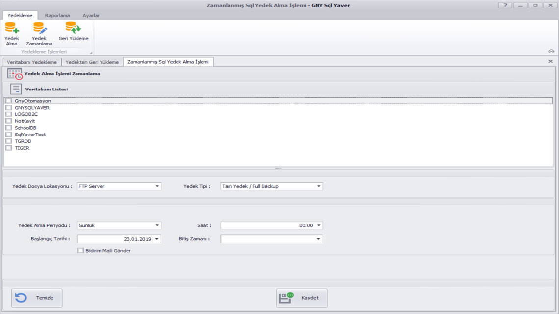 İster anlık yedek almak için isterseniz sizin yerinize düzenli Günlük, Haftalık yada Aylık yedek almanız için programlayabilirsiniz.